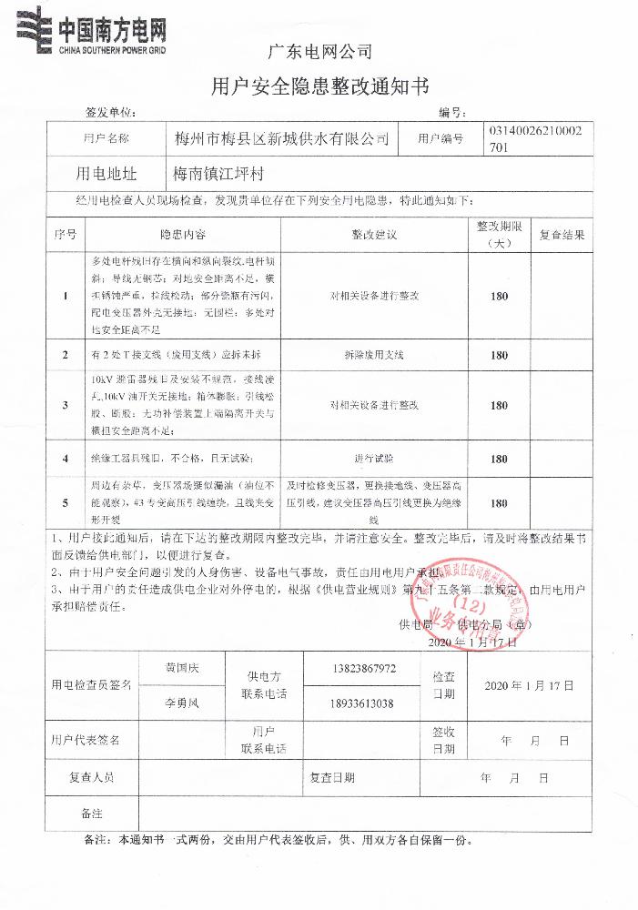 2、合同工期:簽訂合同,供電批準(zhǔn)停電后,20天內(nèi)完工(如因天氣原因工期順延)。