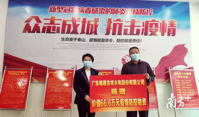 2月28日上午,廣東梅雁吉祥水電股份有限公司向蕉嶺縣新冠肺炎防控指揮部捐贈(zèng)了價(jià)值66.6萬元的疫情防控物資,助力該縣繼續(xù)做好疫情防控工作。